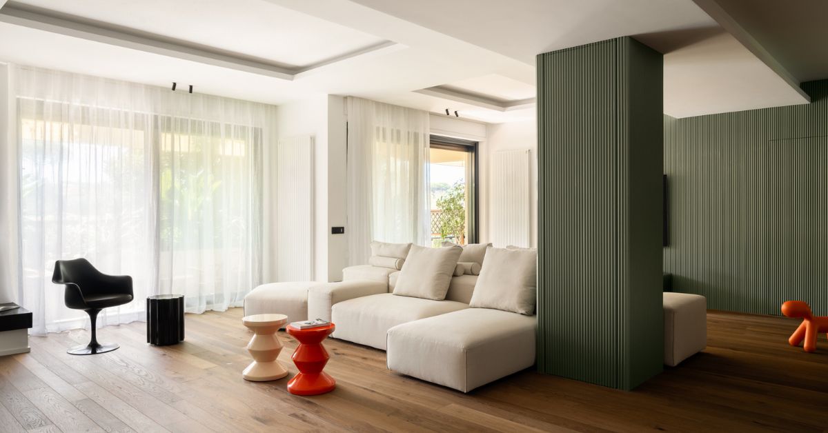 L’architetta Sara D’Innocenzo firma la ristrutturazione di un appartamento di 180 metri quadrati a Roma nord, immerso nel verde alle pendici di Monte Mario.